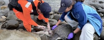 海龜遭網纏繞受傷 海巡疾赴協助脫困