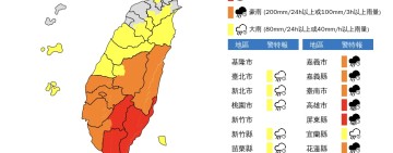 颱風來襲降雨狂炸!中央氣象署示警:南部、東部嚴防大豪雨