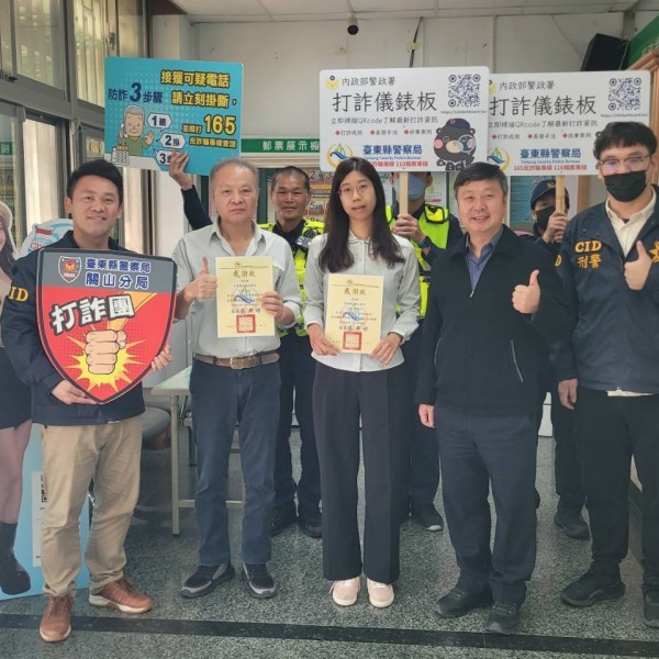推動「關懷提問」及「防詐演練」有成 分局長親頒感謝狀