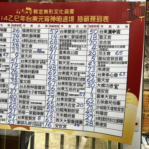 台東元宵神明遶境祈福隊伍今抽籤