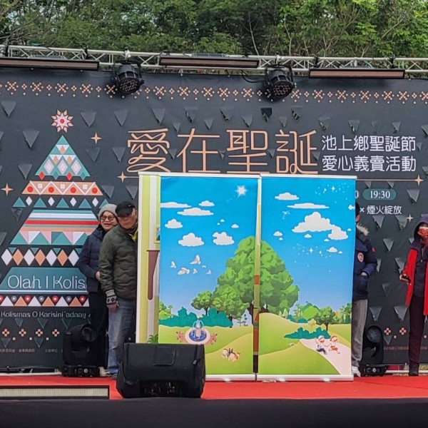 池上舉辦「愛在聖誕-愛心義賣活動」,警扮耶誕老人宣講防詐、交安及反毒