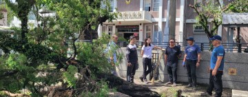 關山警分局長率隊整頓家園 齊力扶正被颱風吹彎的60年龍柏