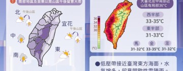 大雨特報 臺東山區有局部大雨發生機率