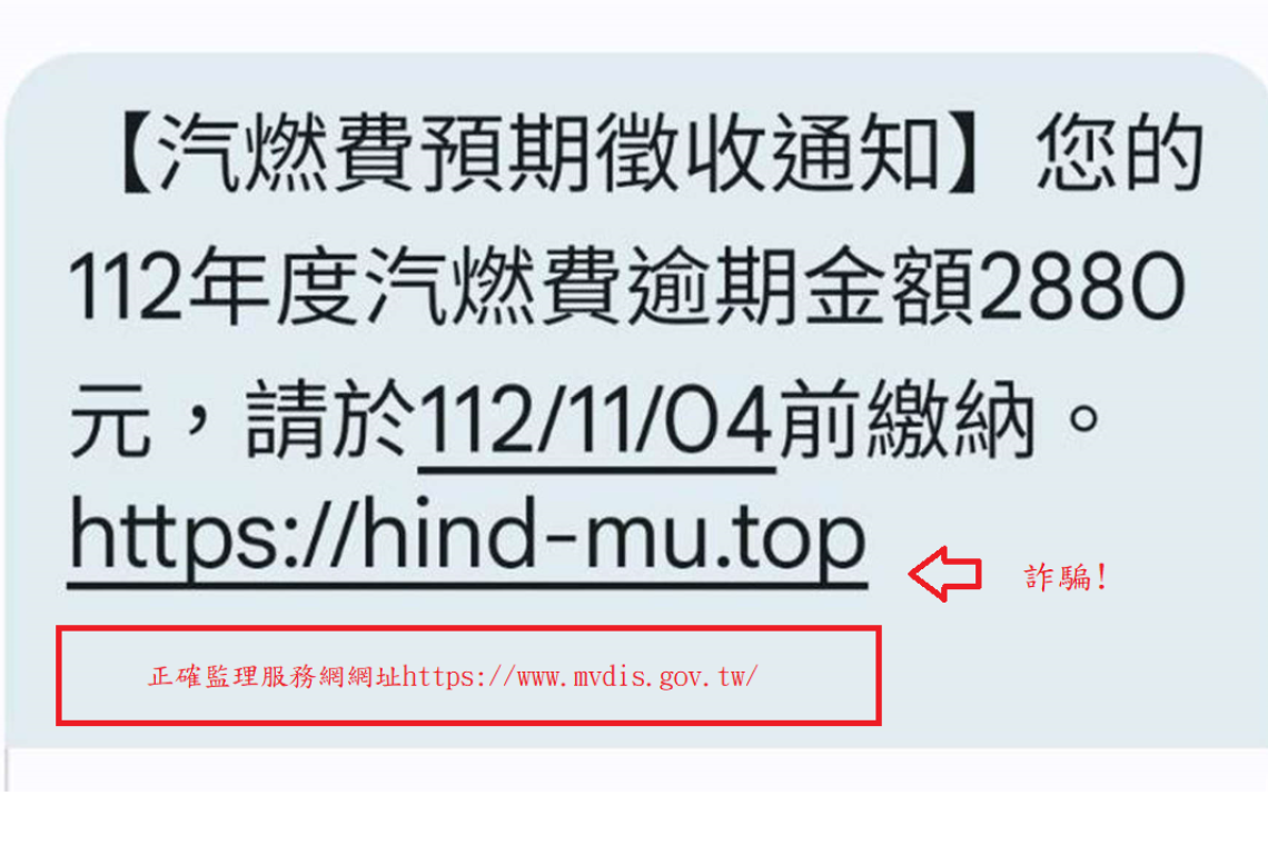 汽燃費詐騙簡訊又來了!臺東監理站提醒留意