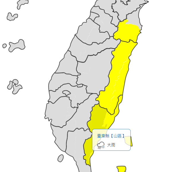 「大雨特報」花東有大雨發生機率