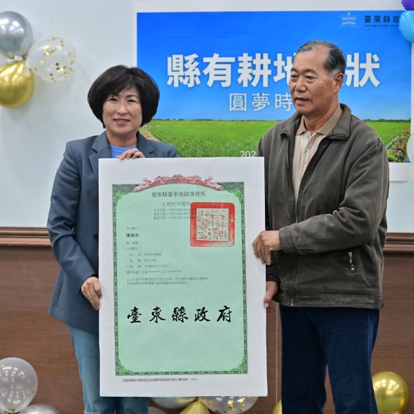臺東率先發放「縣有耕地」放領權狀 饒慶鈴:感謝立委及議會支持 為農民圓夢