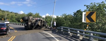 預拌混泥土車轉彎時翻覆