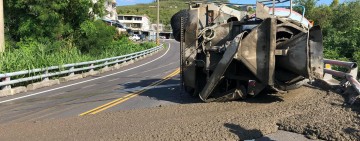 預拌車翻覆 水泥流滿路