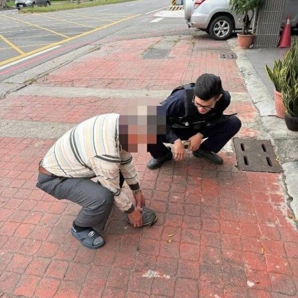 龜速險誤闖馬路 永樂警察守護迷途烏龜