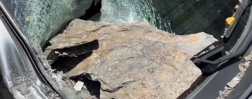 小客車遭落石砸中 擋風玻璃全毀