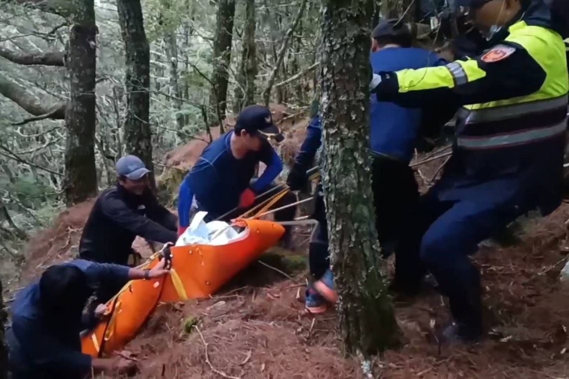 向陽警與消防及協作人員坡底繩索拉起山難大體 步行4公里多運送下山