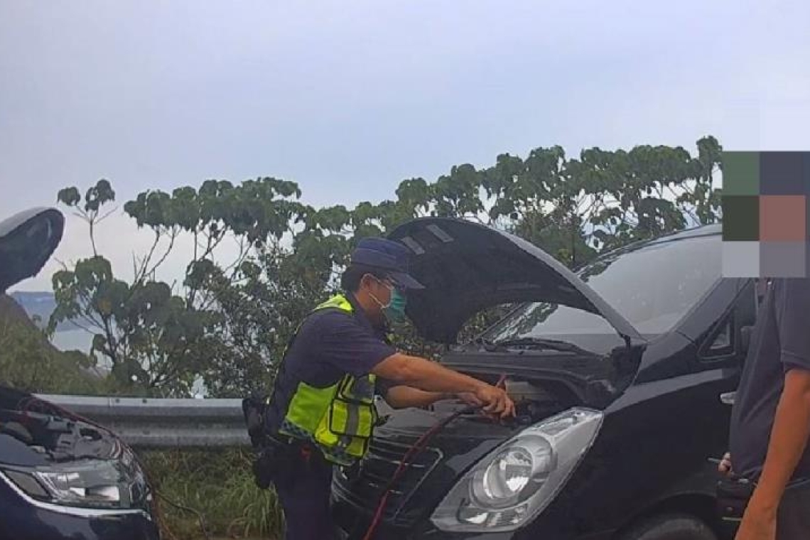 車輛山區拋錨 員警助接電