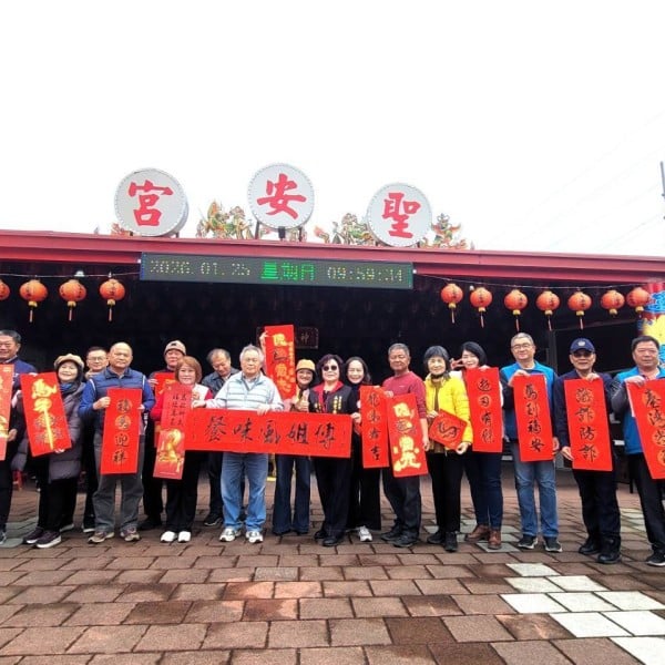 鹿野分駐所所長墨香迎春齊宣講 攜手聖安宮宣講防詐及交安守護鄉親過好年