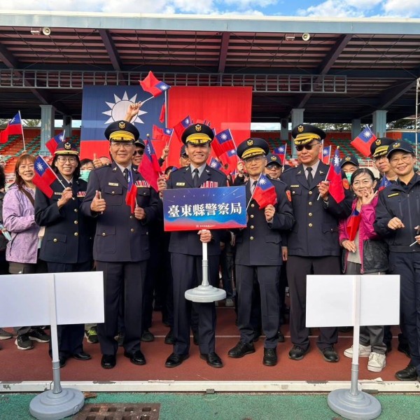 金牌所長+帥警 元旦升旗趣池上 大型手舉牌、廣播放送齊宣講