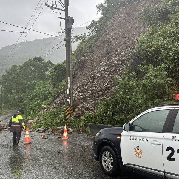 海端警風雨中守護民眾行的安全 廣原村大龍橋產業道路「邊坡落石」即時管制