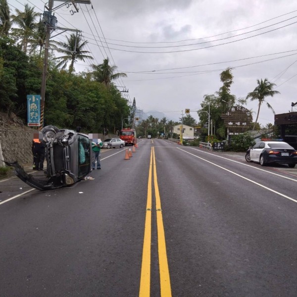 台11線翻車意外 小客車側翻路中央 路人急忙協助脫困
