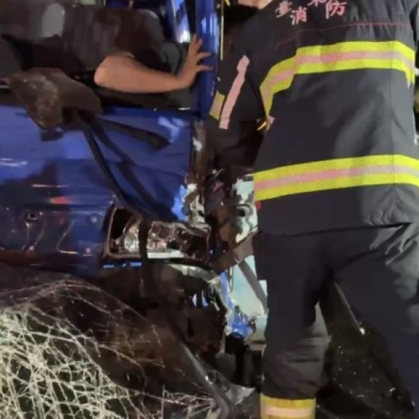 正氣北路自小貨自撞路邊拖吊車