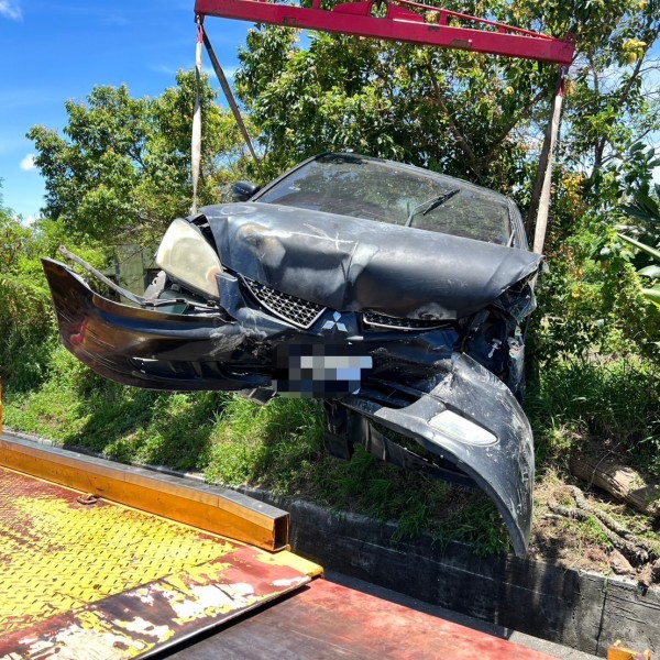 李男闖入對向車道「卡水溝、撞路燈」1大人2孩童受傷送醫