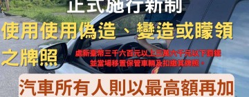 加強取締偽造車牌違規 成功分局籲勿以身試法