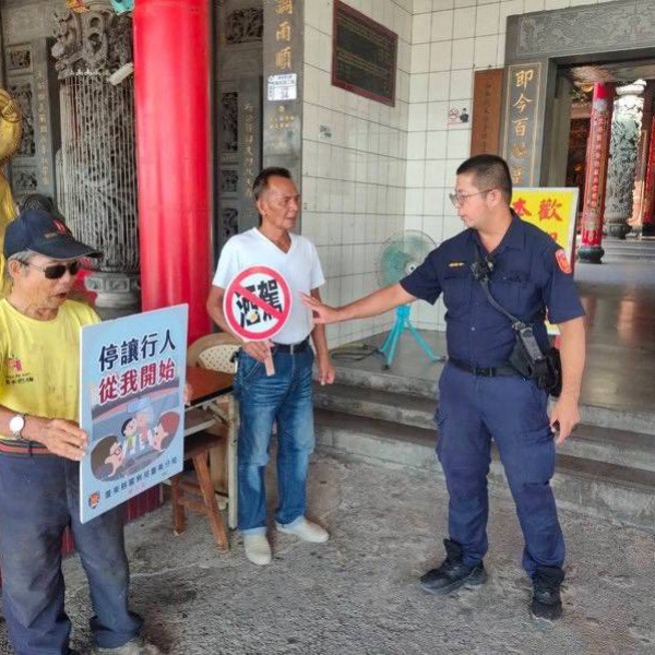 知本警前進廟宇 宣導交安及防詐不打烊