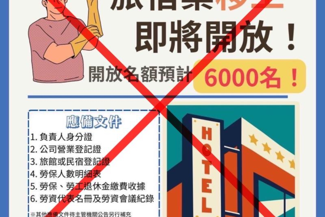並未開放移工去旅宿業工作